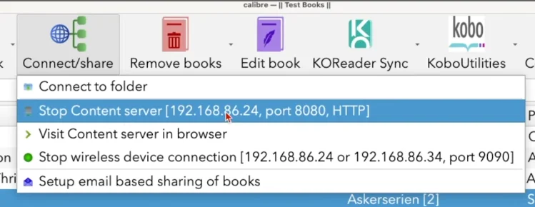 Uno de los problemas que tuve fue que, cuando quería pasar libros e imágenes para el cover, tenía que salir de KOReader porque, cuando conectaba la Kindle a mi PC, no lo reconocía, pero hay una opción de Calibre para tener tu propio servidor local y pasar todo por wifi.